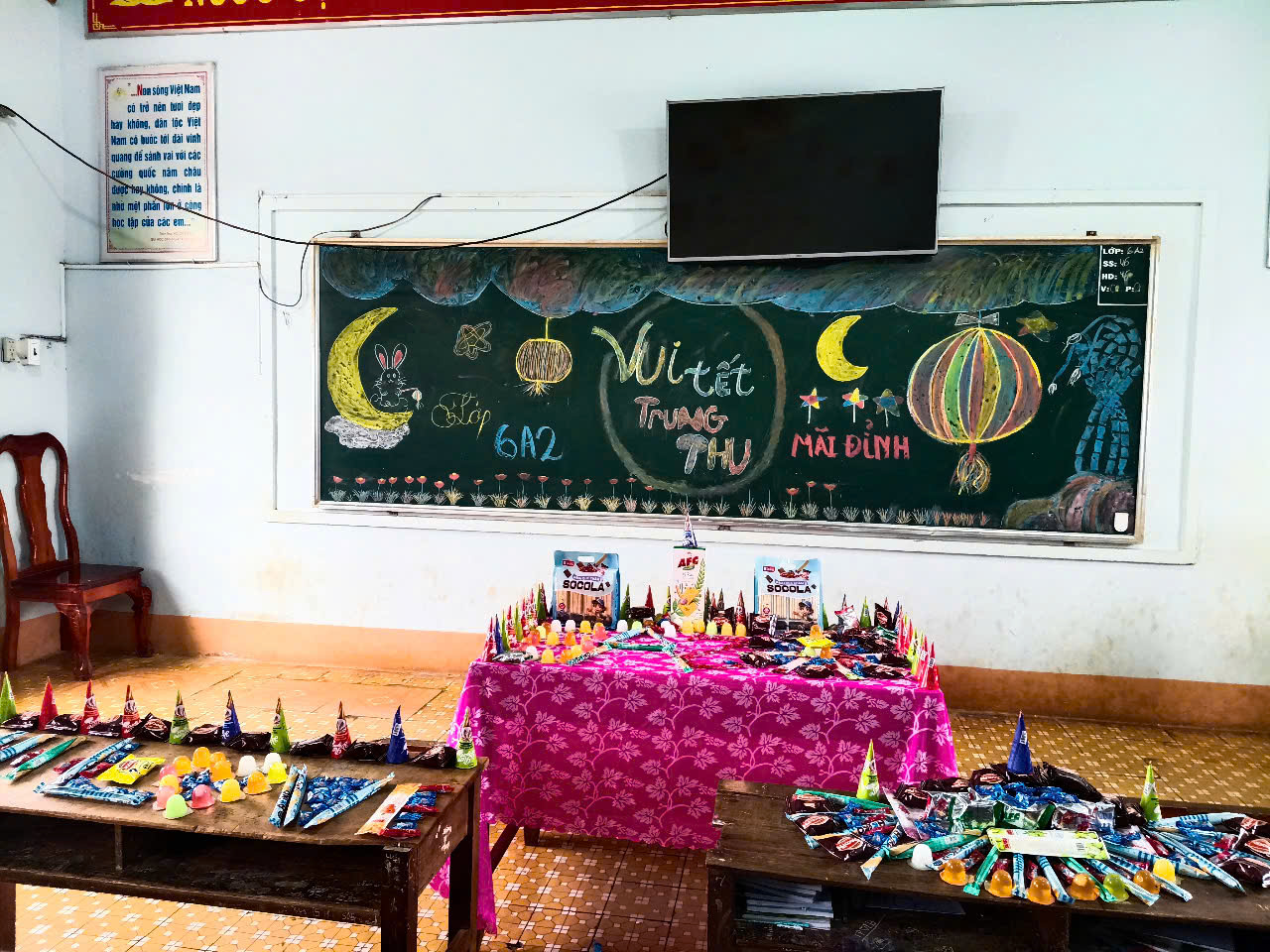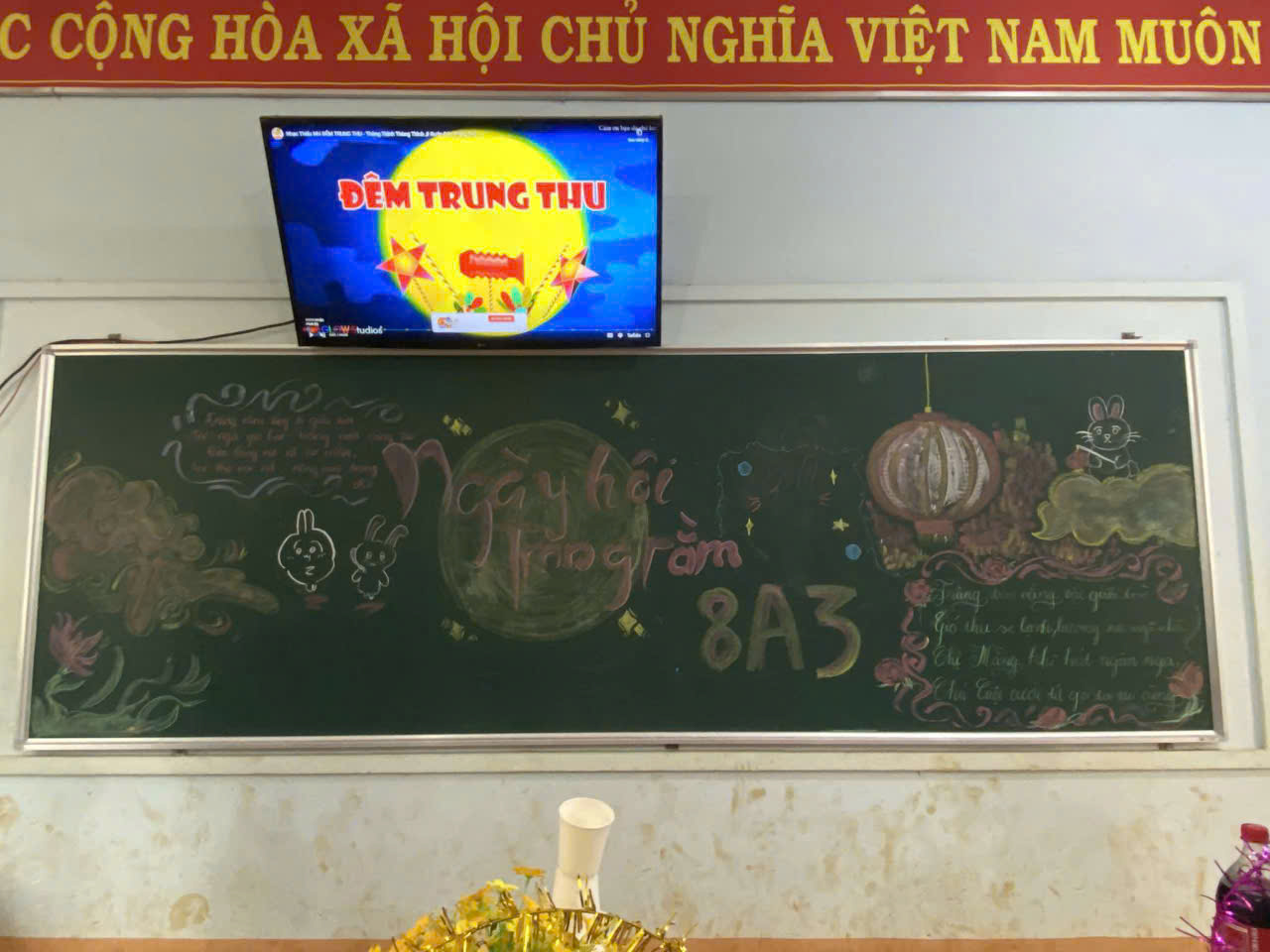 • Đặc biệt, lớp 8A3 đã trang trí bảng đen rất ấn tượng với hình ảnh Đêm Trung Thu và lời chúc gửi gắm tình cảm.